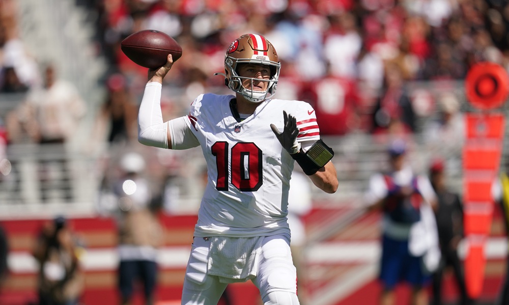 Jones is starting for the 49ers while Brock Purdy is sidelined at the moment with a shoulder and toe injury. San Francisco is 3-0 on the season and two of those wins came with Jones starting at quarterback.