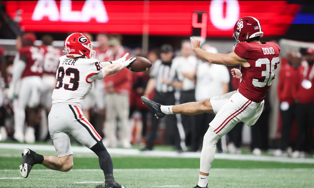 Similar to the Tide’s first punt, the Georgia defenders managed to get dangerously close to punter Blake Doud. However, this time, Bulldog Cole Speer did get to Doud, blocking the punt and setting Georgia up at Alabama’s 25-yard line.