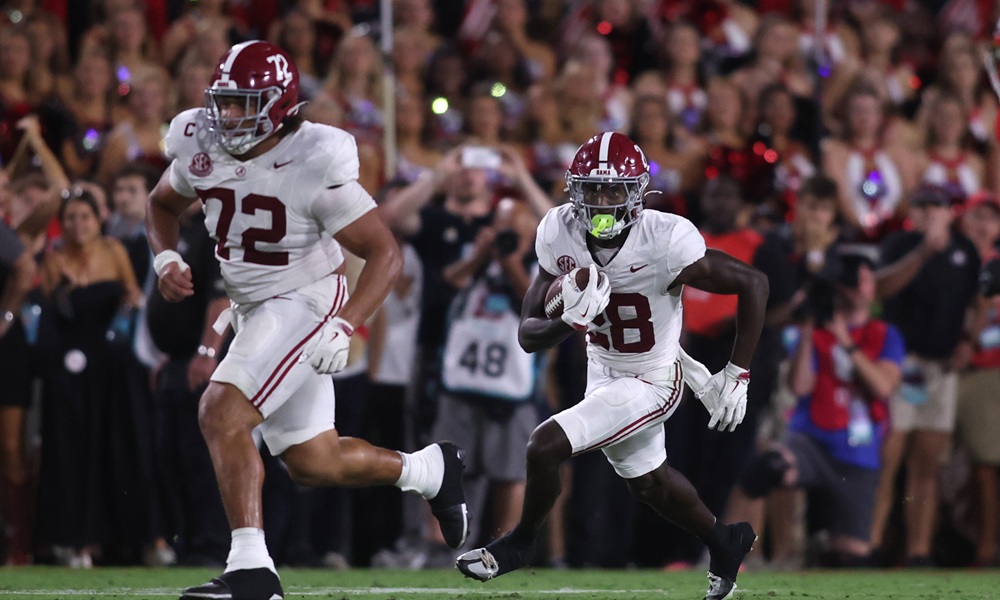 ”He’s done a good job the last probably three weeks, four weeks, middle of camp,” DeBoer said after Riley started against ULM. “He really kind of turned it up and there’s some things that he can do that are a little different than the rest of the group there, like where he picks up his knees and runs hard, inside, outside, and it got a little burst. He does a nice job catching the ball in the backfield. I think he’s really picked up the understanding and responsibility when it comes to pass protection, too.”